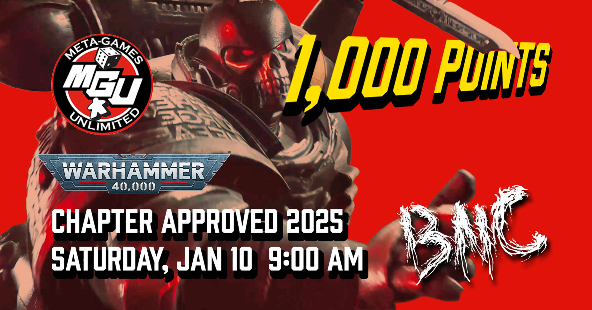 BNC Warhammer 40,000 1000pt Tournament Jan 10 8:00 am - 5:00 pm BNC Warhammer 40,000 1000pt Tournament